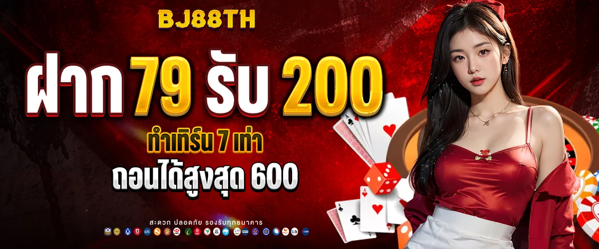 ฝาก 79 → รับเพิ่ม 121 = รวม 200 / ทำเทิร์น 7 เท่า / ถอนได้สูงสุด 600